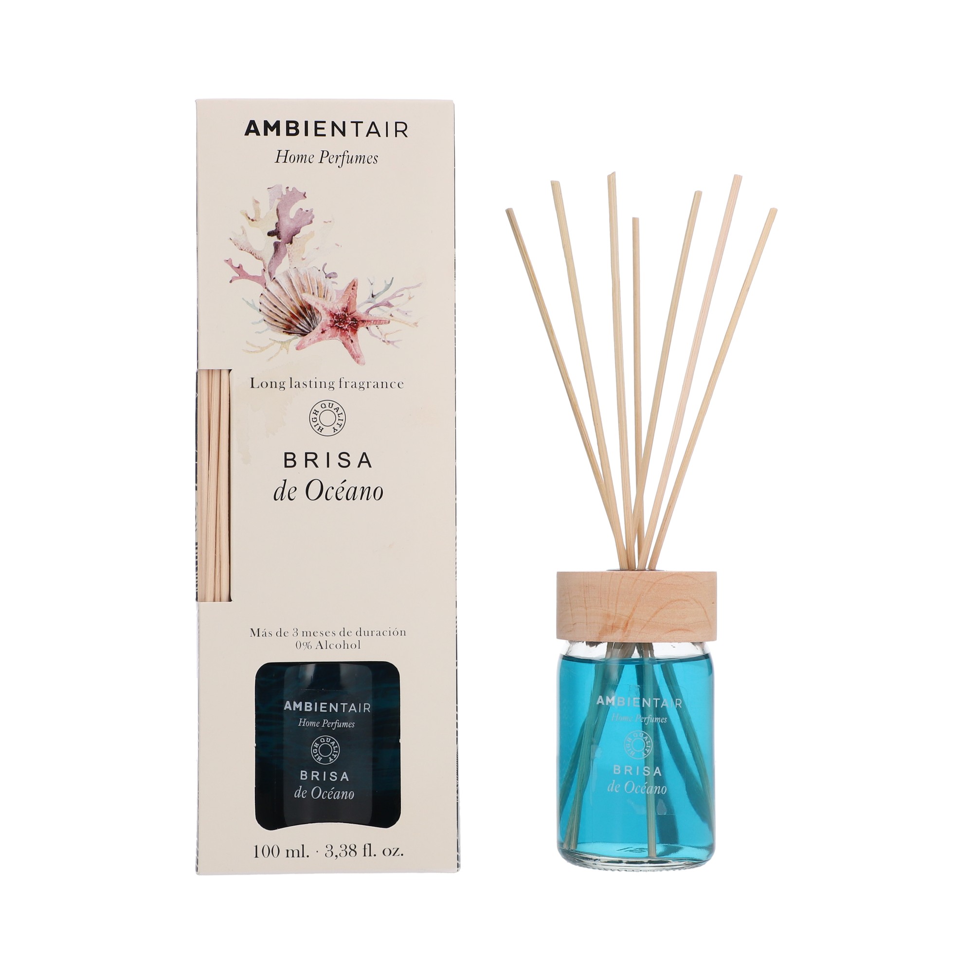 Feel the freshness of the sea in your home with the Ambientair Home Perfumes Ocean Breeze wand diffuser. Its marine, clean and revitalizing scent will make you feel as if you were floating in the ocean, thanks to a combination of lavender, green notes and a background of sandalwood and musk.