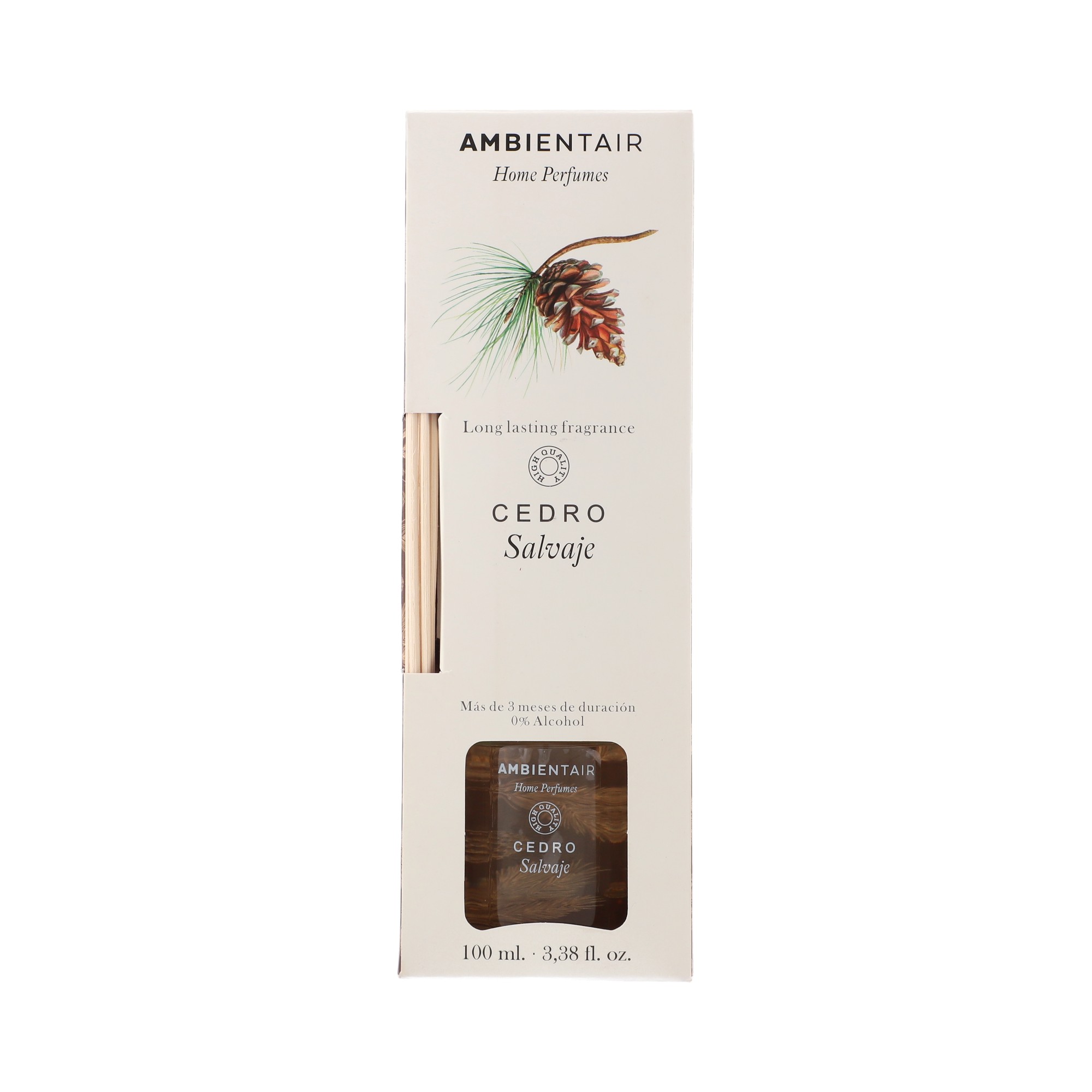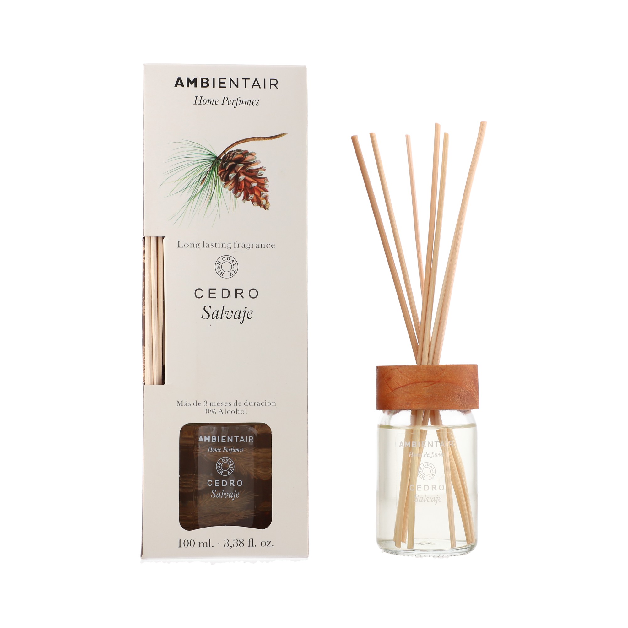 Create a sophisticated and cozy atmosphere with the Ambientair Home Perfumes Wild Cedarwood Reed Diffuser. Its woody, intense and enveloping fragrance combines the warmth of sandalwood with the character of cedar and oud, ideal for those seeking an elegant and long-lasting scent.