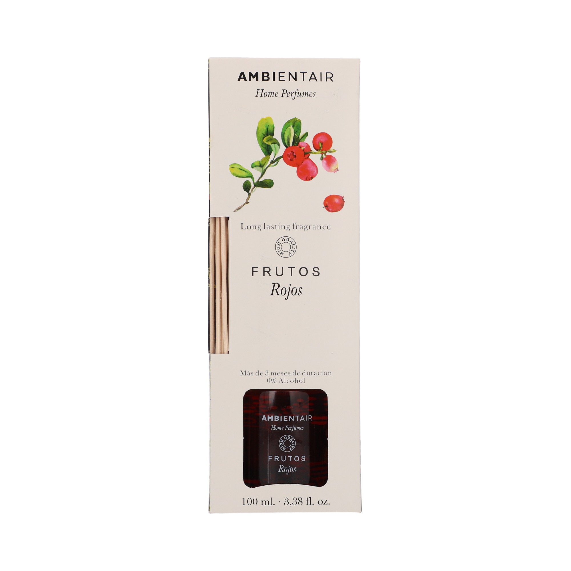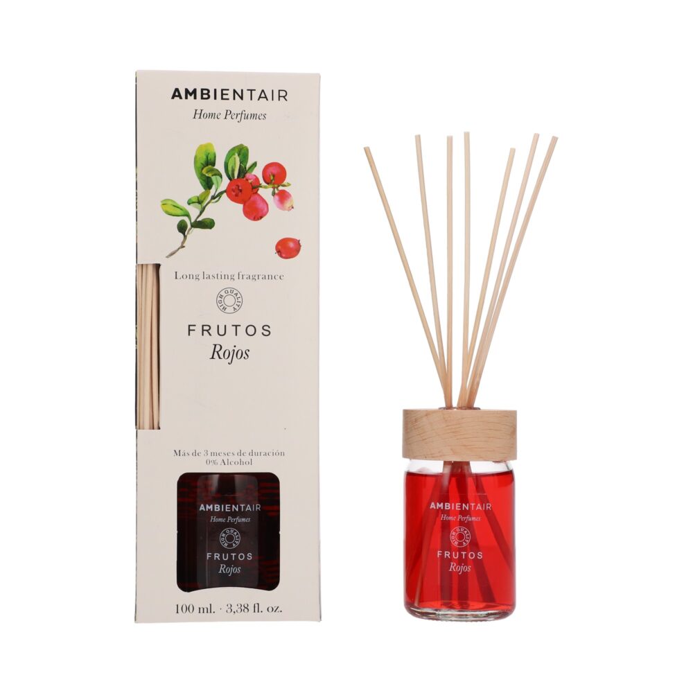 Fill your home with energy and vitality with the Ambientair Home Perfumes Red Fruits diffuser wand. Its sweet and fruity scent concentrates the essence of small berries such as strawberry, raspberry, blueberry and blackberry, creating a vibrant, cheerful and welcoming atmosphere from the first moment.