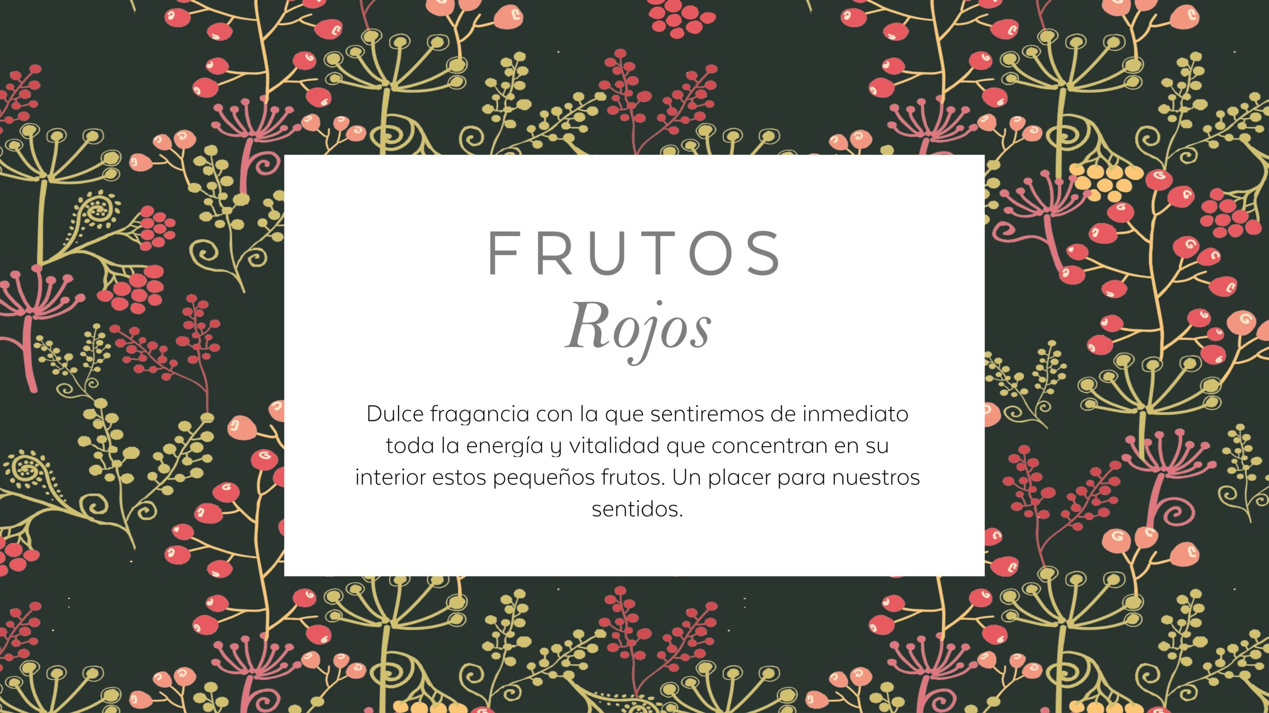 Sweet and juicy fragrance with notes of red fruits such as strawberry, cherry, raspberry and blackberry.