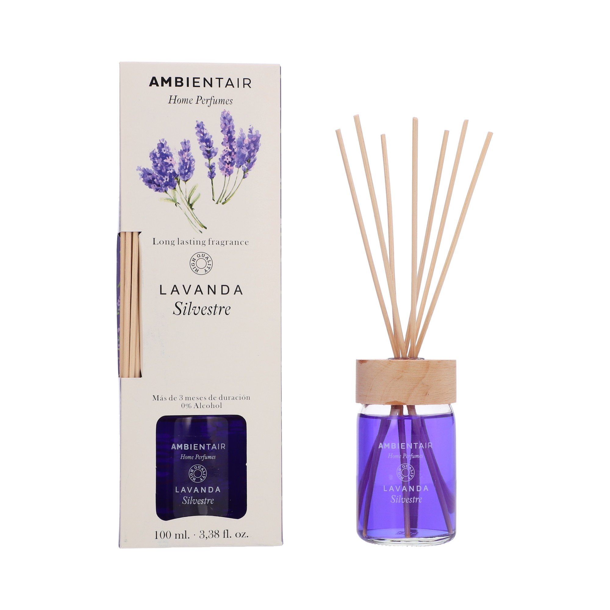 Find peace and well-being with the Ambientair Home Perfumes Wild Lavender Reed Diffuser. Its floral and herbal fragrance is designed to relax the body and mind, with natural notes of lavender, mint and eucalyptus that evoke a walk through wild fields in the sun.