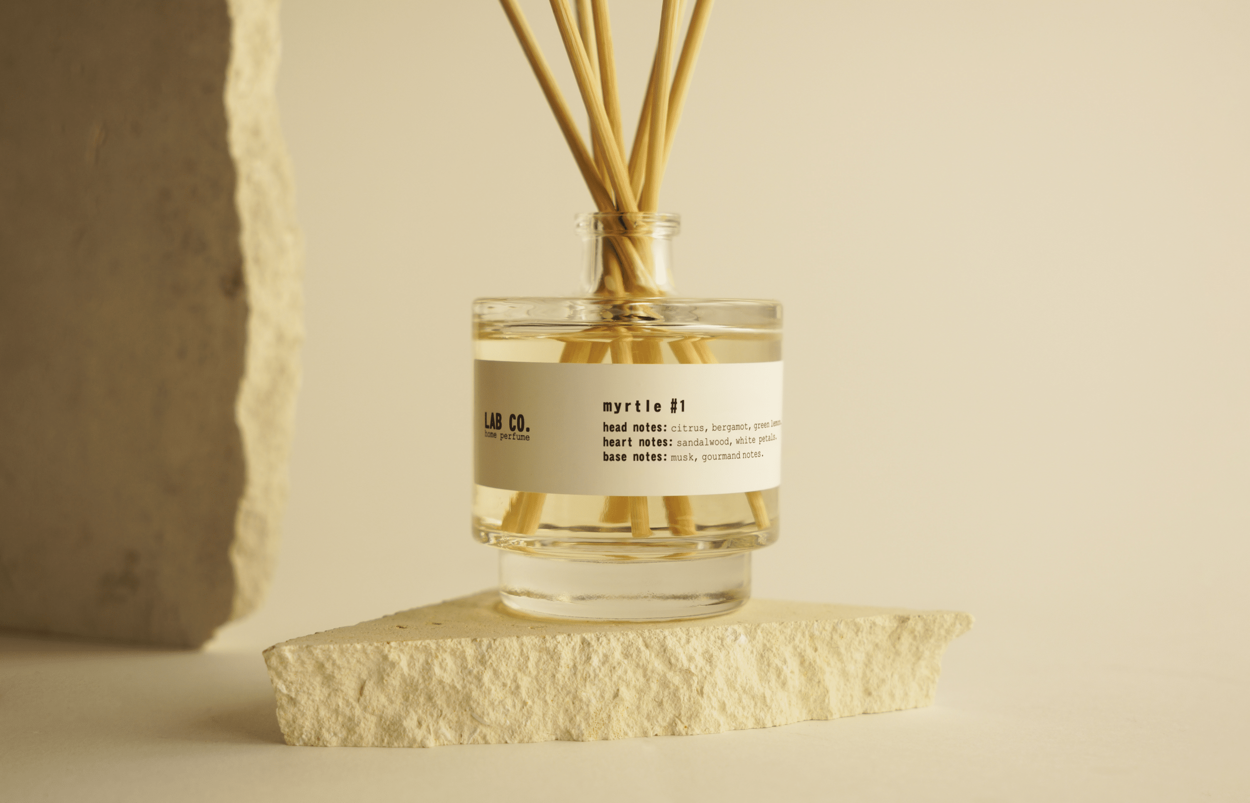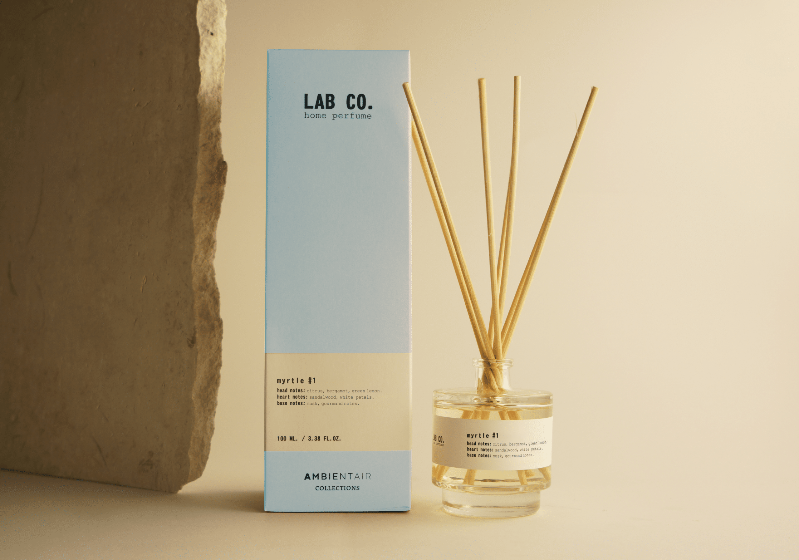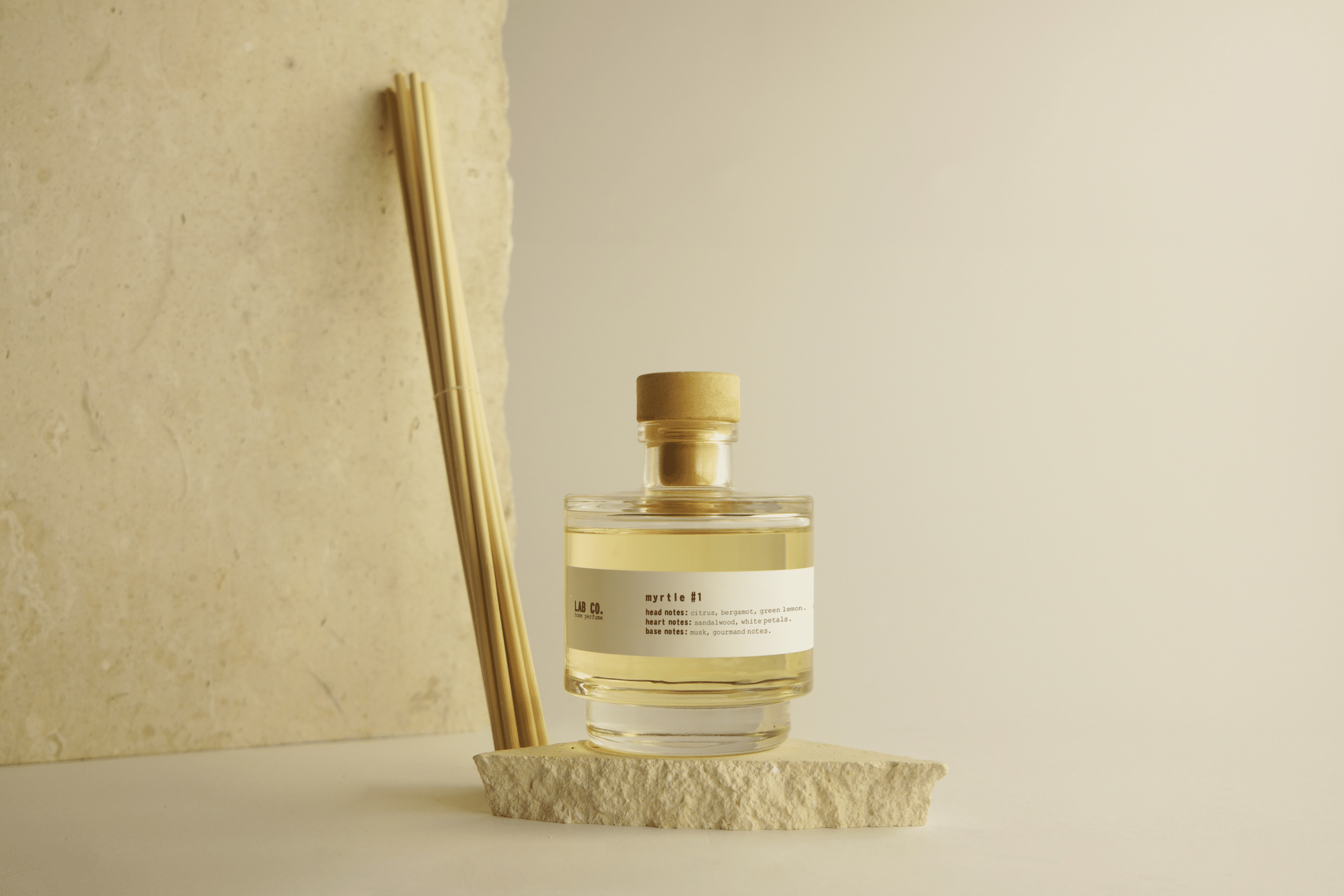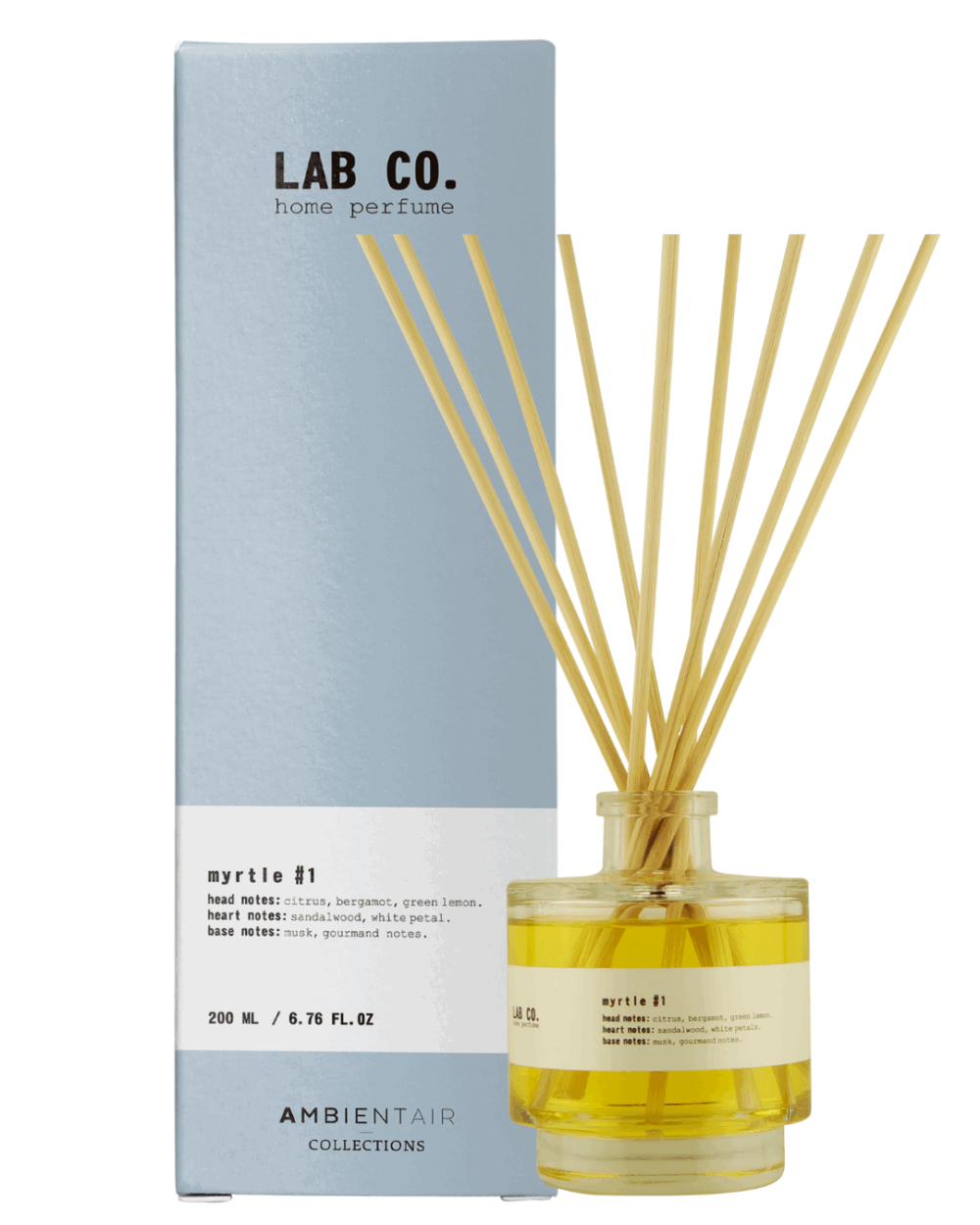 Ideal for living rooms, bedrooms, bathrooms or work spaces, the diffuser LAB CO. Myrtle #1 offers you a practical, aesthetic and continuous way to scent your spaces for weeks. No need for electricity or flames, just place the sticks and enjoy.
