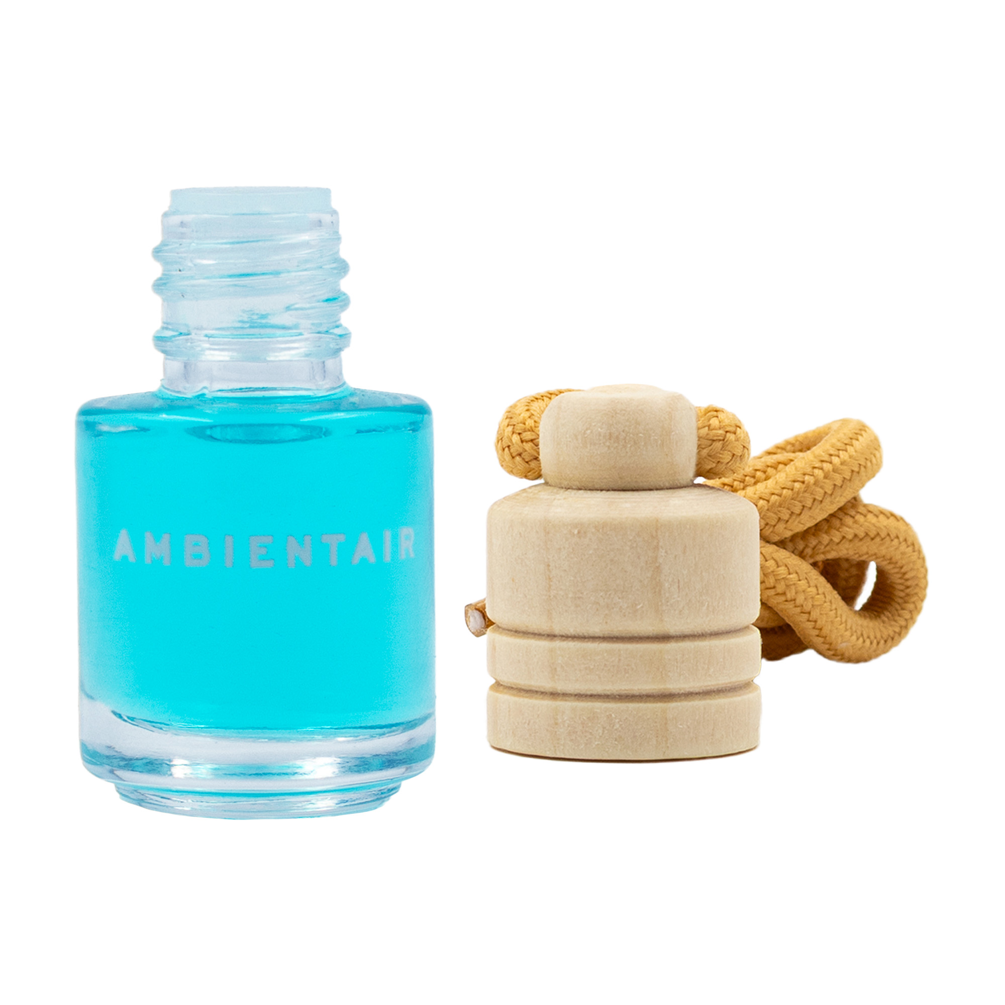 Transport your senses to the serenity of the sea with Ambientair's Ocean Car Freshener. Its fresh, aquatic fragrance creates a relaxing ambiance on every drive. Made with 0% alcohol, this 6 ml scent hangs easily from the rearview mirror and offers over 45 days of continuous freshness. Perfect for those who love clean, natural scents.
