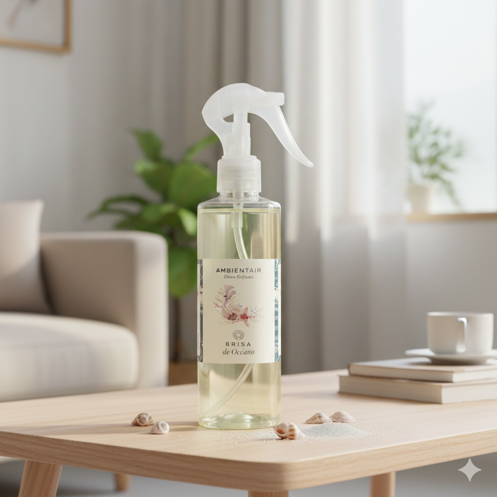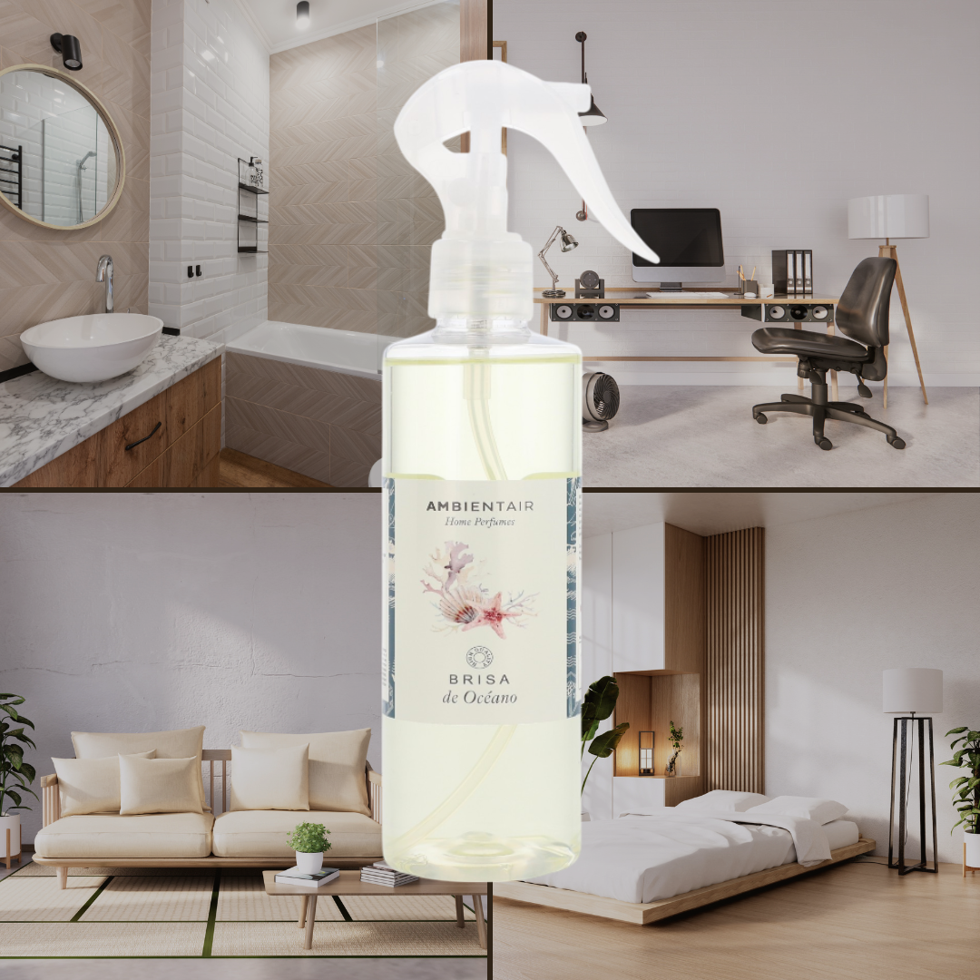 Enjoy the freshness and well-being of the sea breeze with Ambientair Ocean Breeze spray. This marine fragrance combines top notes of lavender, mandarin and green touches that evoke the purity of the sea. Its floral and ambery heart with rose and marine notes brings a sense of calm and freshness, while the base of moss, musk and sandalwood completes this olfactory experience that transports your senses to the coast.