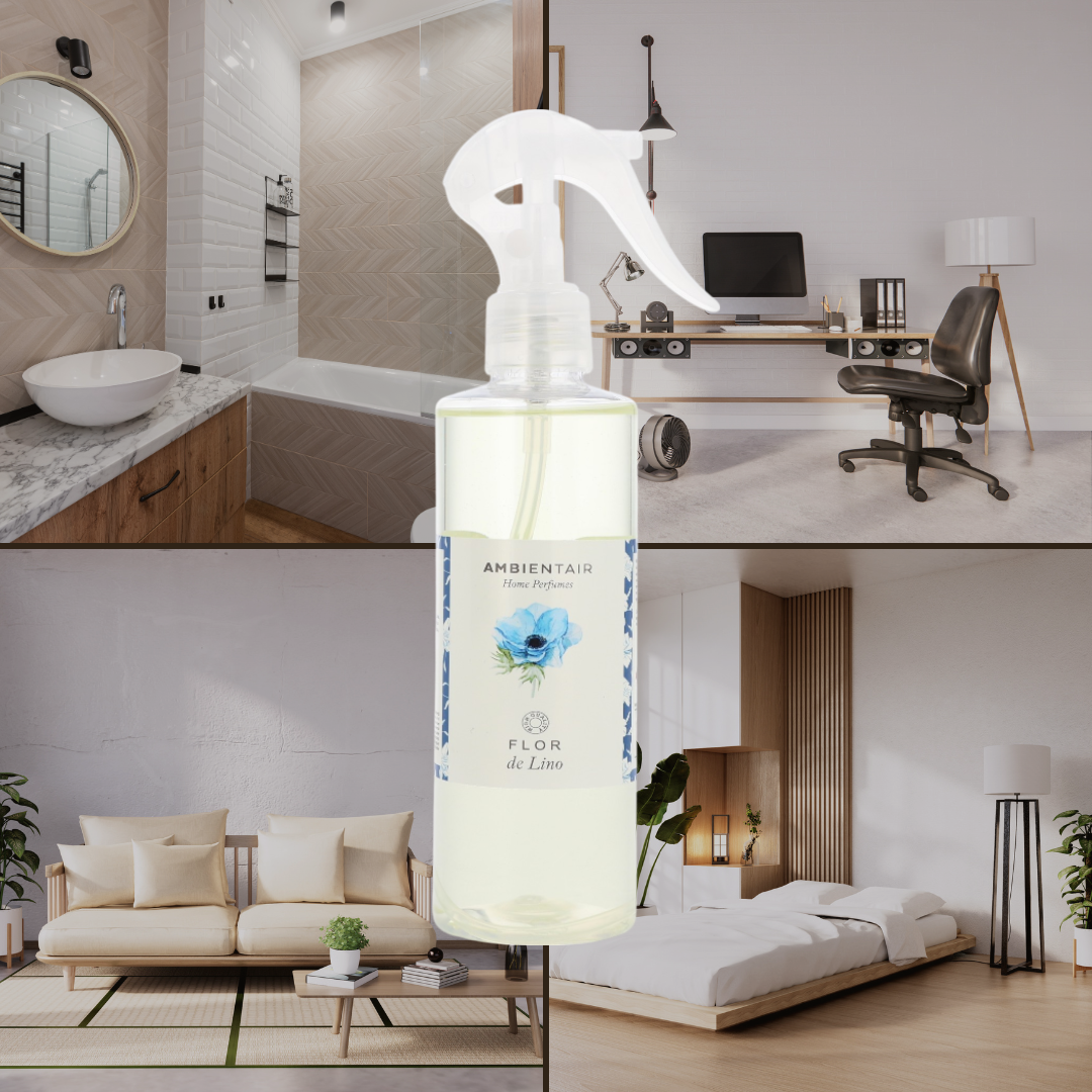 Enjoy the feeling of freshness and cleanliness with Ambientair's Linen Flower spray. This fragrance combines top notes of grass, lavender and wild flowers reminiscent of a sunny summer day. The floral heart with iris, gardenia and blue flowers brings delicacy and softness, while the base of musk and amber envelops the atmosphere with a warm and welcoming touch.