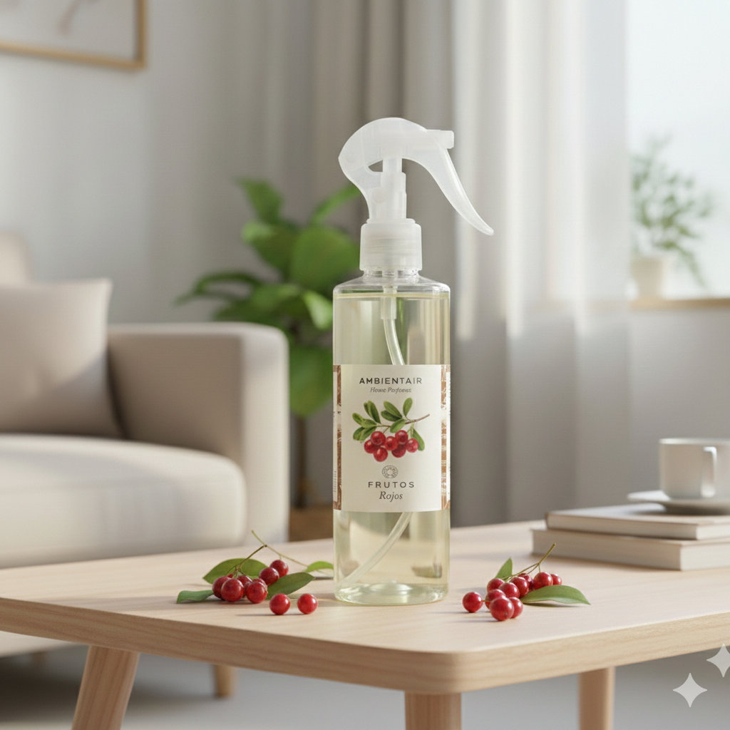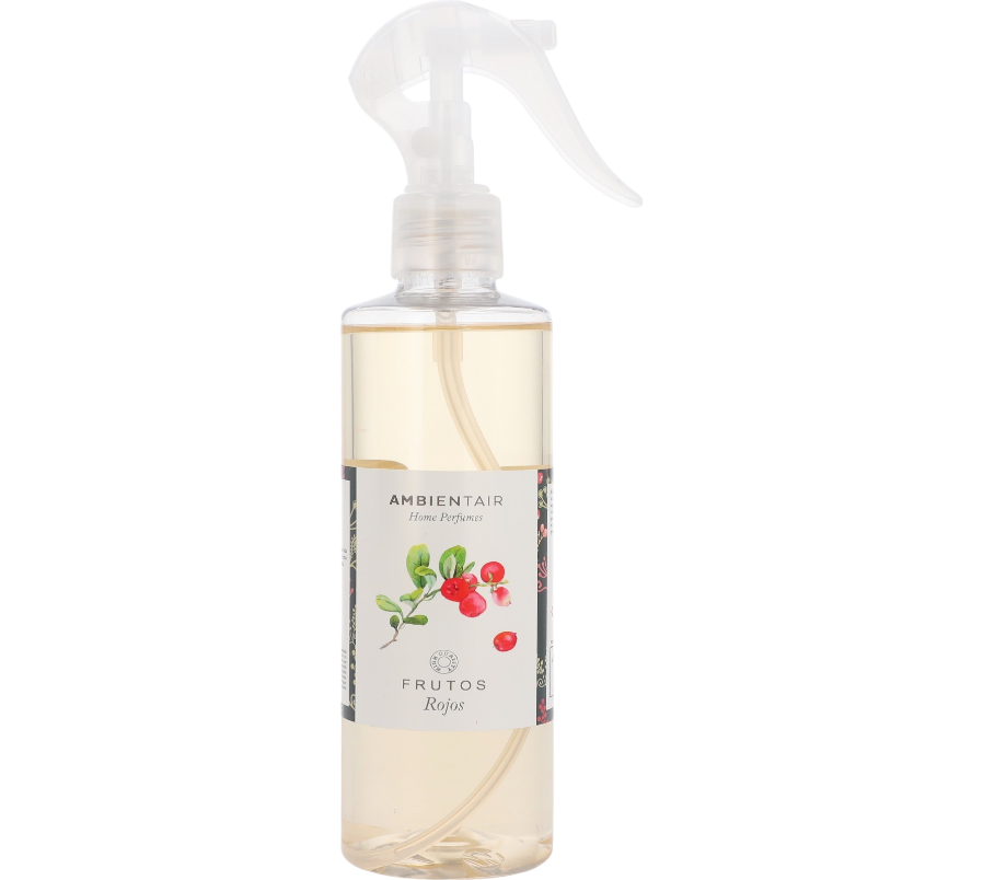 Enjoy the energy and vitality of red berries with this spray by Ambientair. Its sweet and enveloping fragrance combines top notes of strawberry, blueberry and black currant that immediately awaken the senses. The heart is made up of raspberry, black grape and ripe cherry, while its base notes of blackberry and blackberry add depth and a juicy touch.