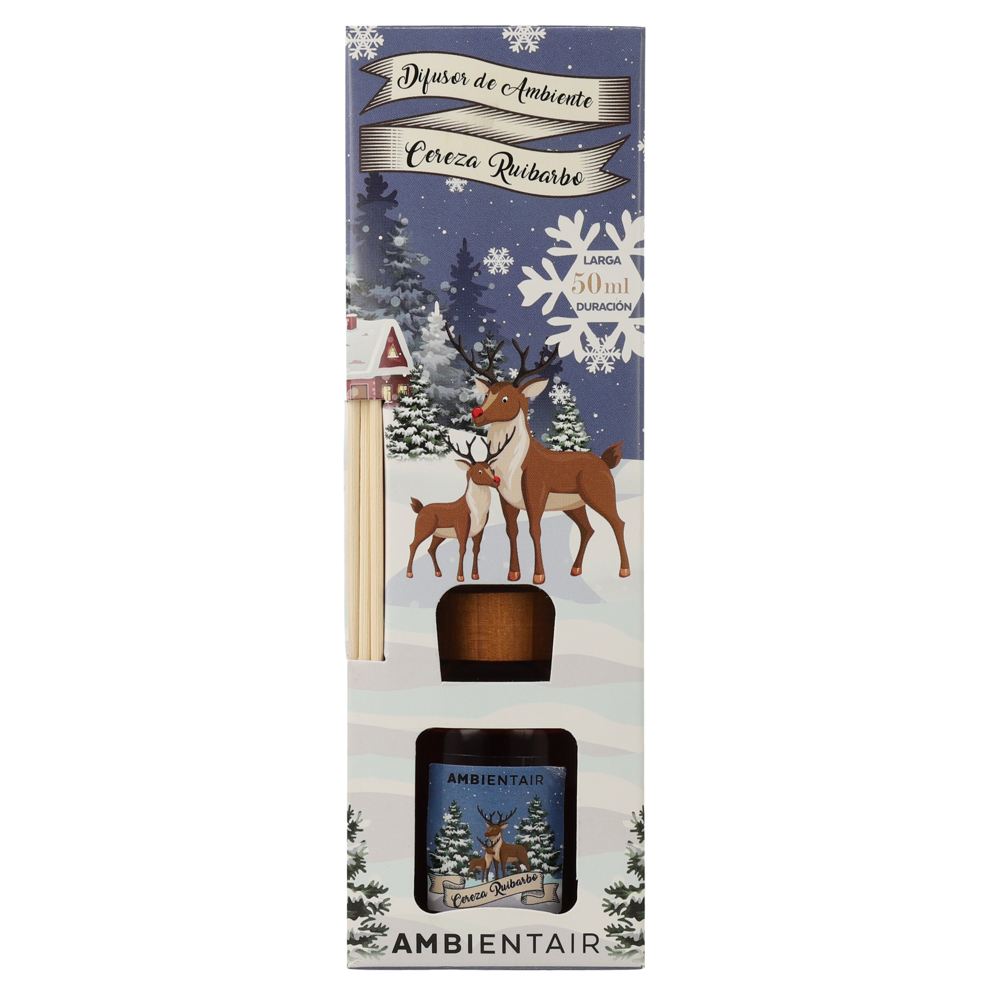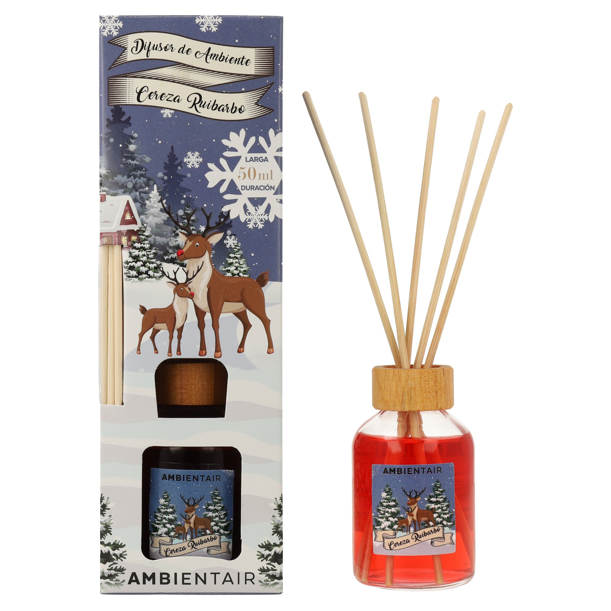 Its bottle, adorned with charming reindeer, adds a decorative detail ideal for the season, becoming an element that perfumes and dresses your home with a winter air full of magic. The natural rattan sticks distribute the fragrance continuously and safely, 24 hours a day, without electricity or flame.
