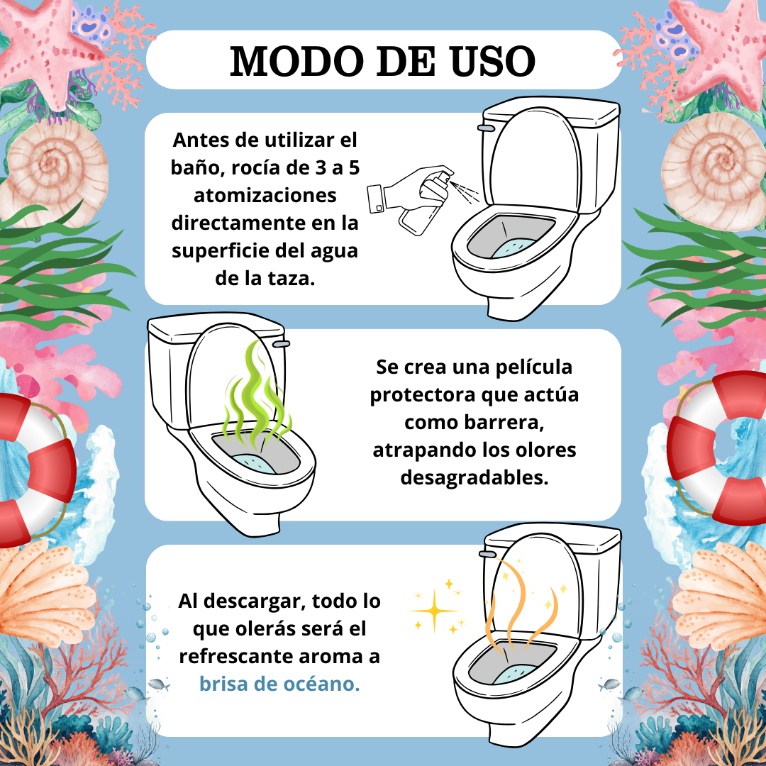 With the pre-WC Ocean Breeze spray of AMBIENTAIRForget about uncomfortable moments. Simply spray a couple of times in the toilet before use to create a barrier that neutralizes odors. before they appear.