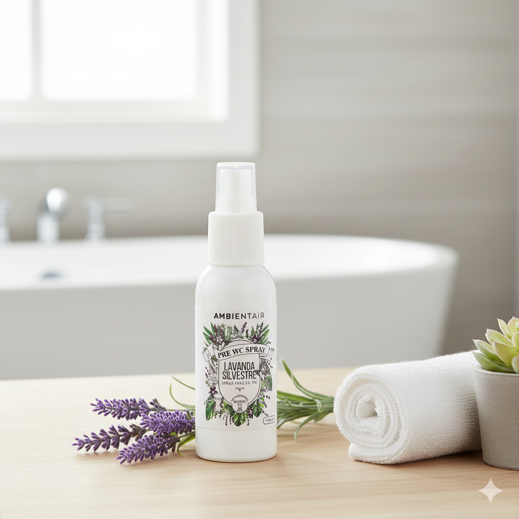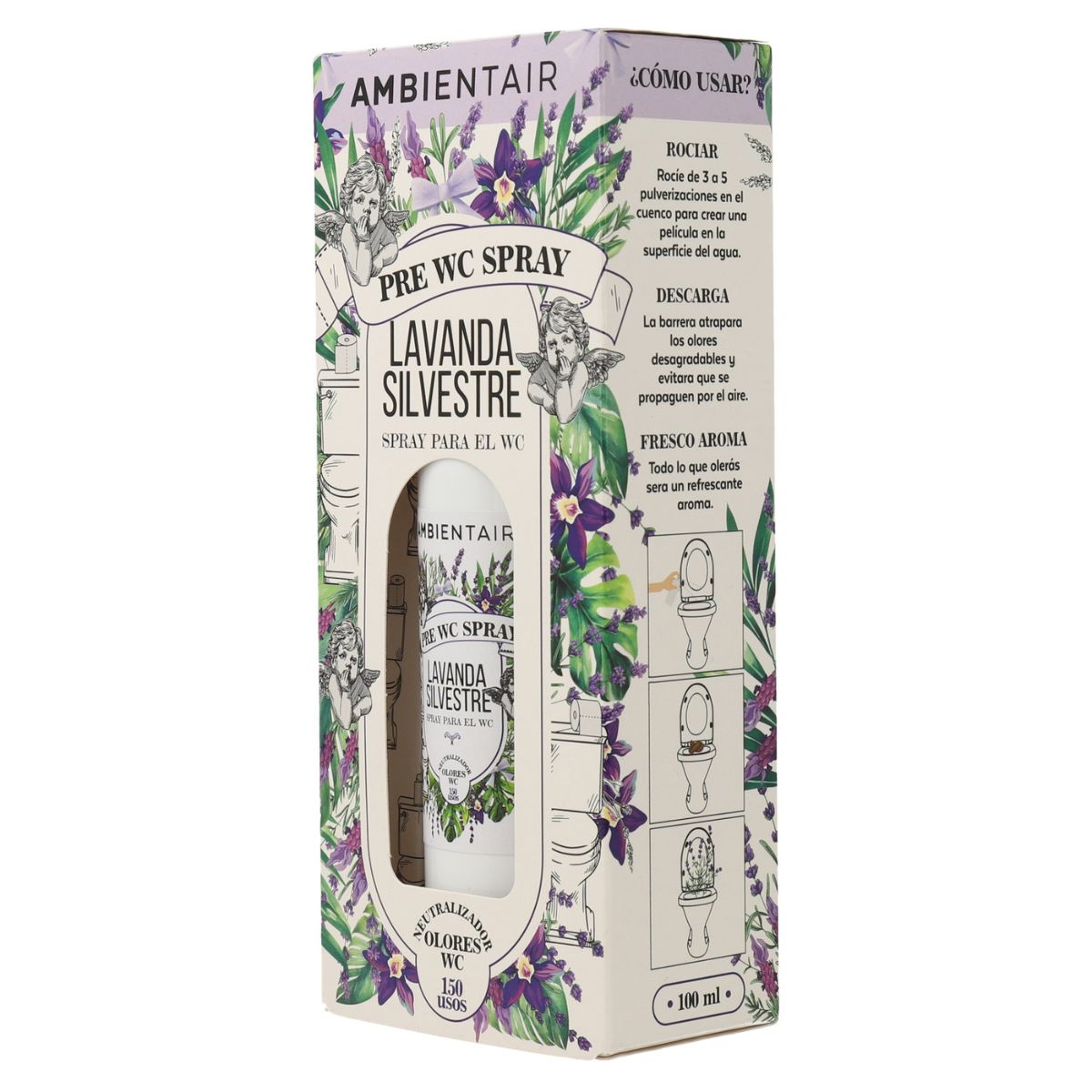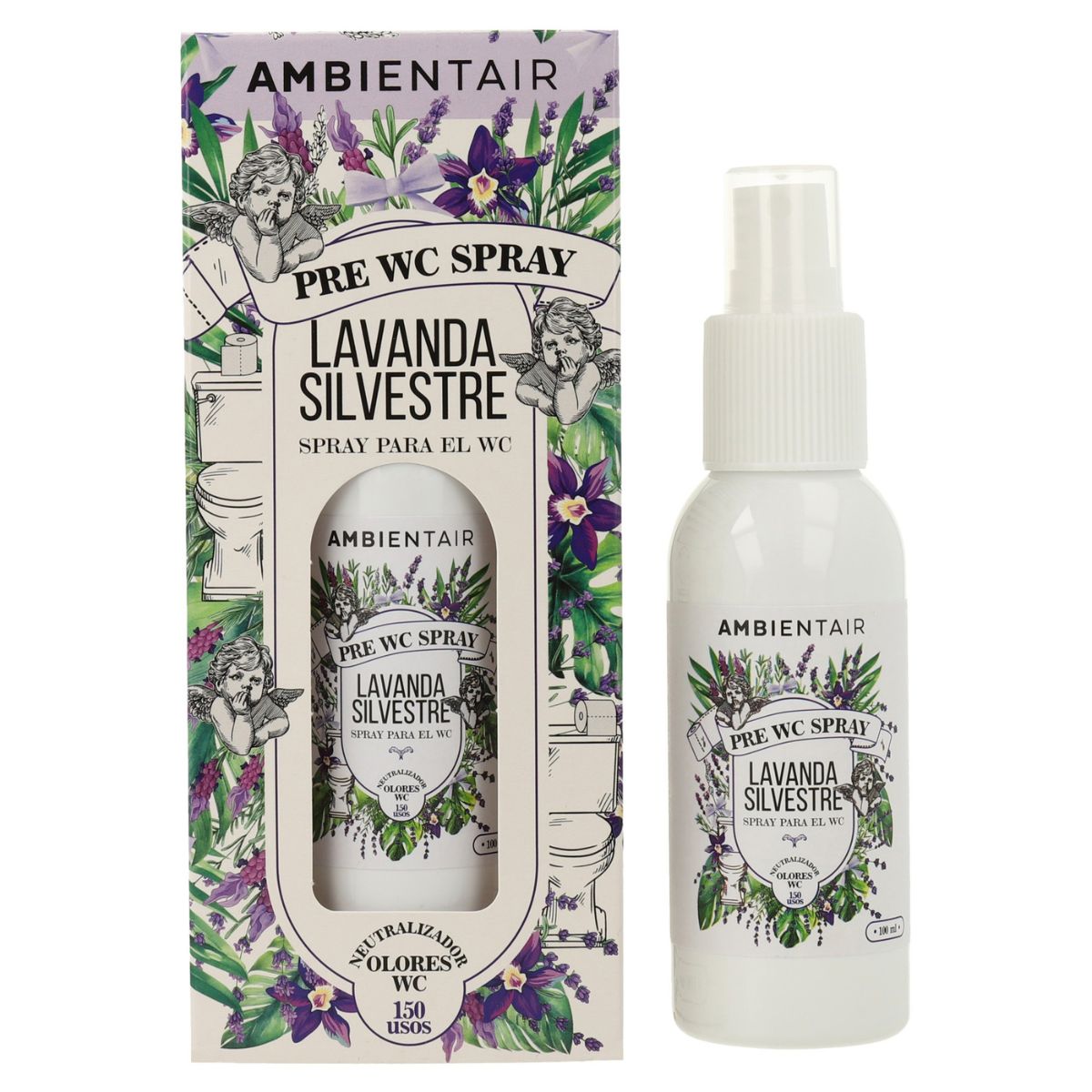 The Wild Lavender Pre-WC Spray from AMBIENTAIR is the perfect balance between efficiency and well-being. Designed for use formerly before going to the bathroom, this fragrance creates a perfumed film on the surface of the water that traps odors before they come out.