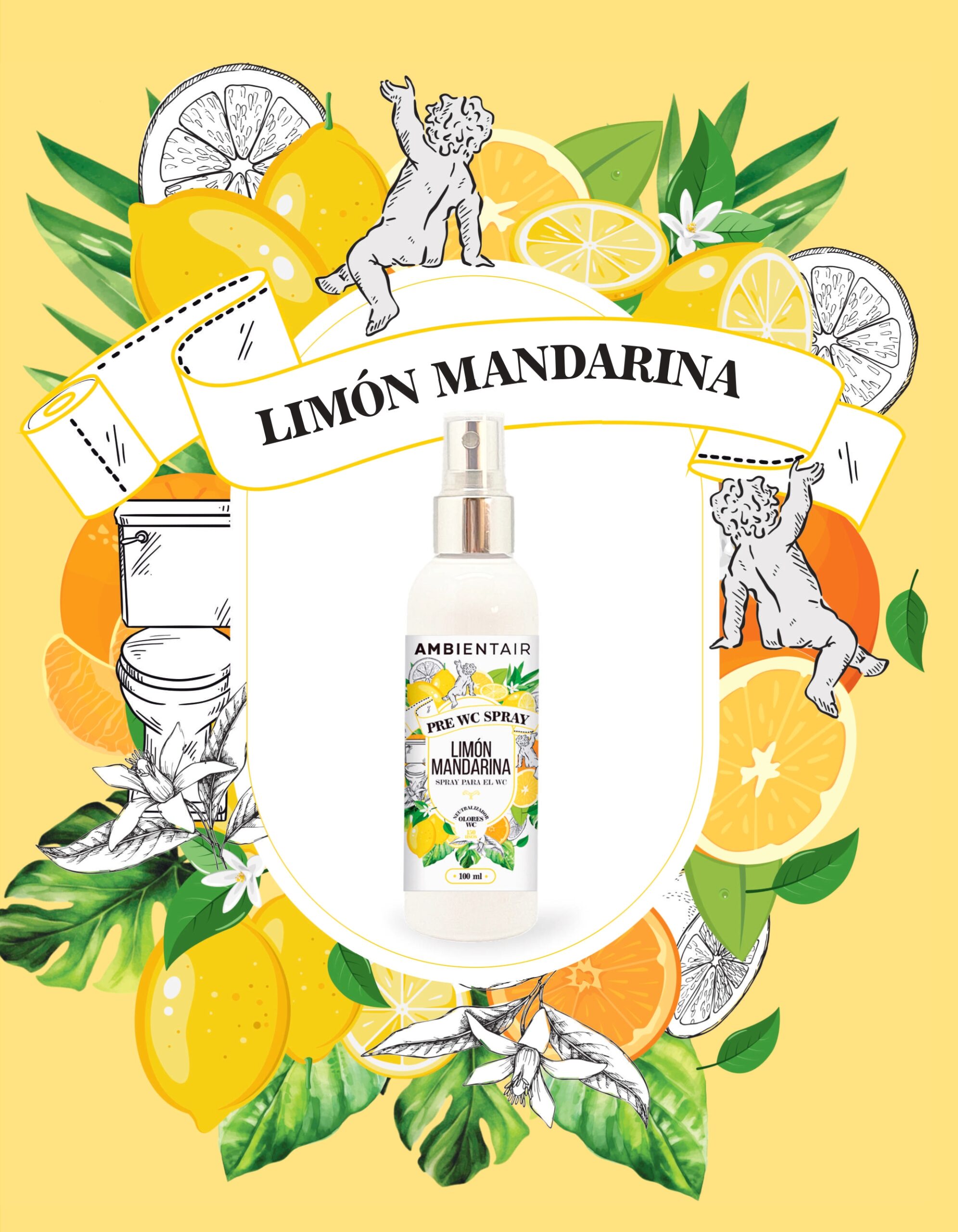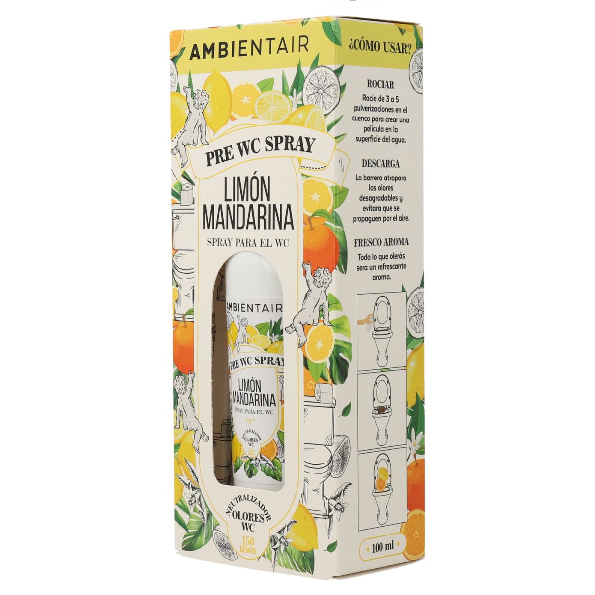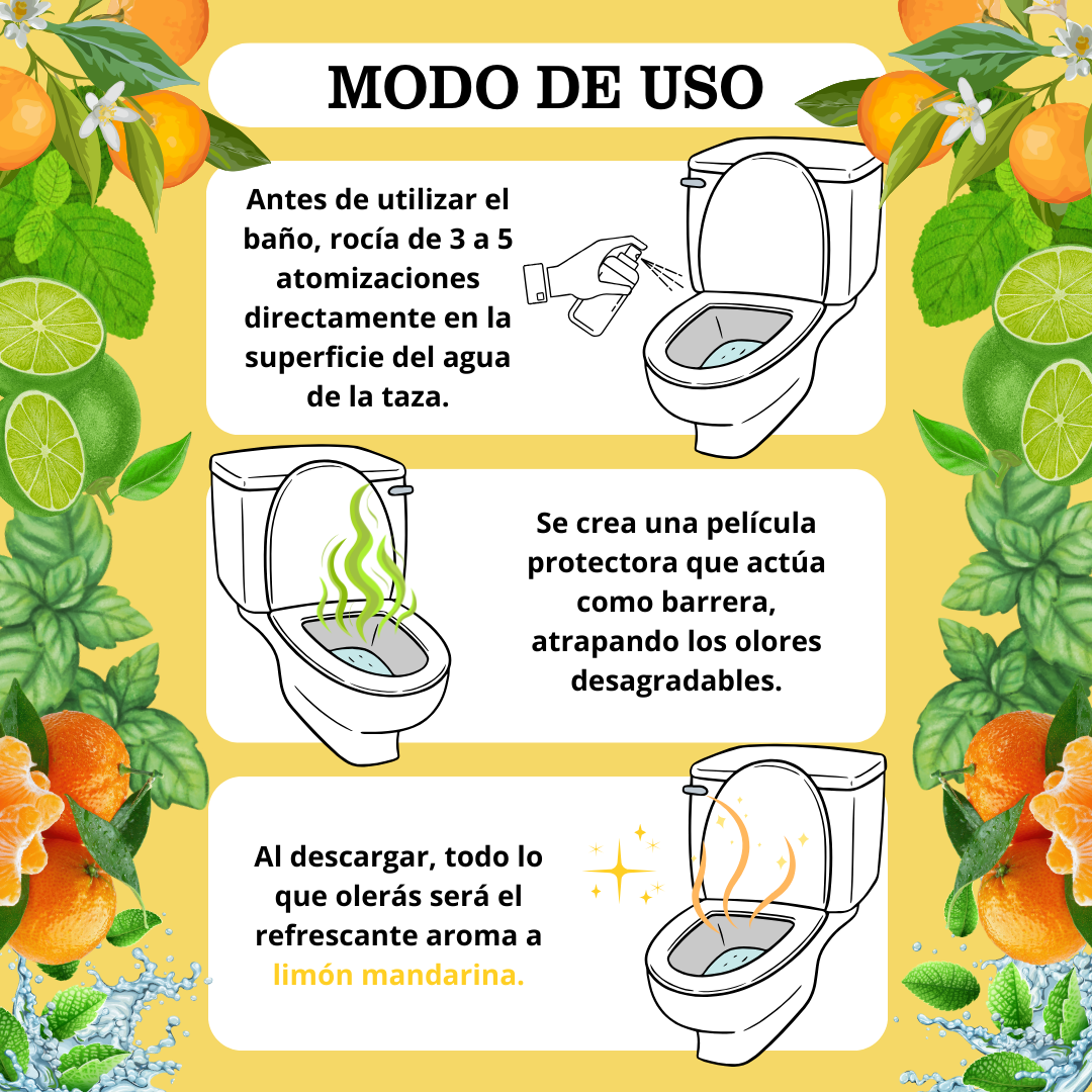 Pre WC Limón Mandarina | Spray aromatizante para baño 100 ml | Elimina olores