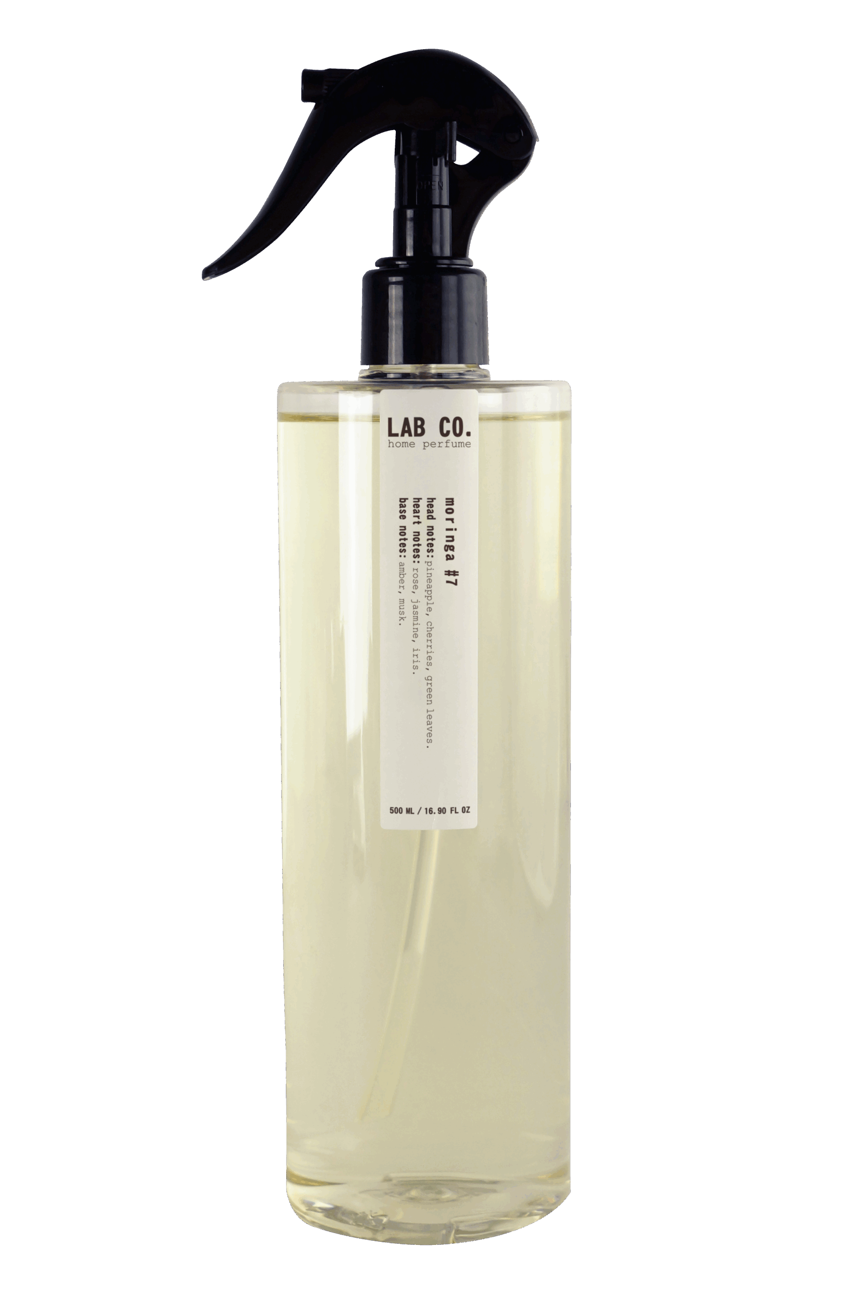 Room Spray Moringa #7 by LAB CO. offers a fresh and elegant fragrance that combines fruity and floral notes with a woody and musky base. The top notes of pineapple, cherries and green leaves bring vitality and freshness, while the floral heart of rose, jasmine and iris adds sophistication. Finally, the base of amber and musk brings warmth and depth to any environment.