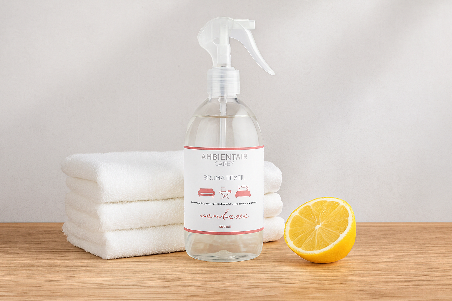 The Ambientair Fabric Fragrance Spray - Verbena Scent combines herbal freshness with citrus notes that energize any space. Perfect for those who love natural, lively and stimulating scents.