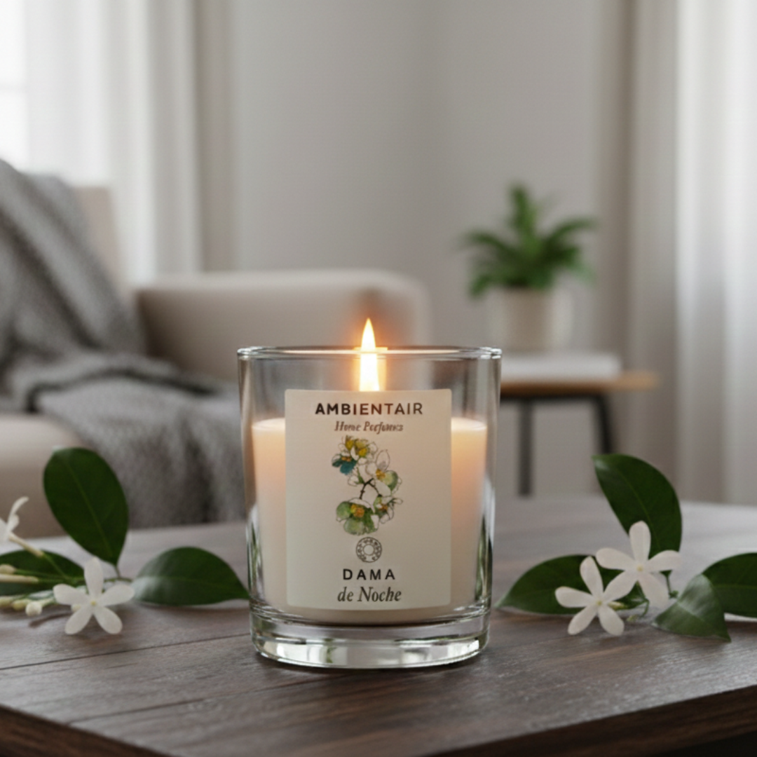 Fill your spaces with a mysterious and enveloping air with the Lady of the Night scented candle of the line Ambientair Home Perfumes. Made in Spain with 100% vegetable waxes and without kerosene, this candle offers more than 30 hours of an intense, delicate and floral scent that transforms any environment into a cozy and elegant corner.