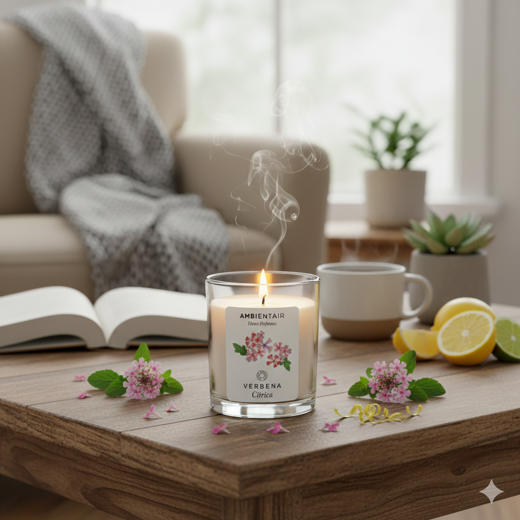 Revitalize any space with the scented candle Citrus Verbena by Ambientair Home Perfumes, a fresh and cheerful fragrance that awakens the senses. Its citrus and green notes offer a clean and vibrant aroma, ideal for filling your home with light and positive energy.