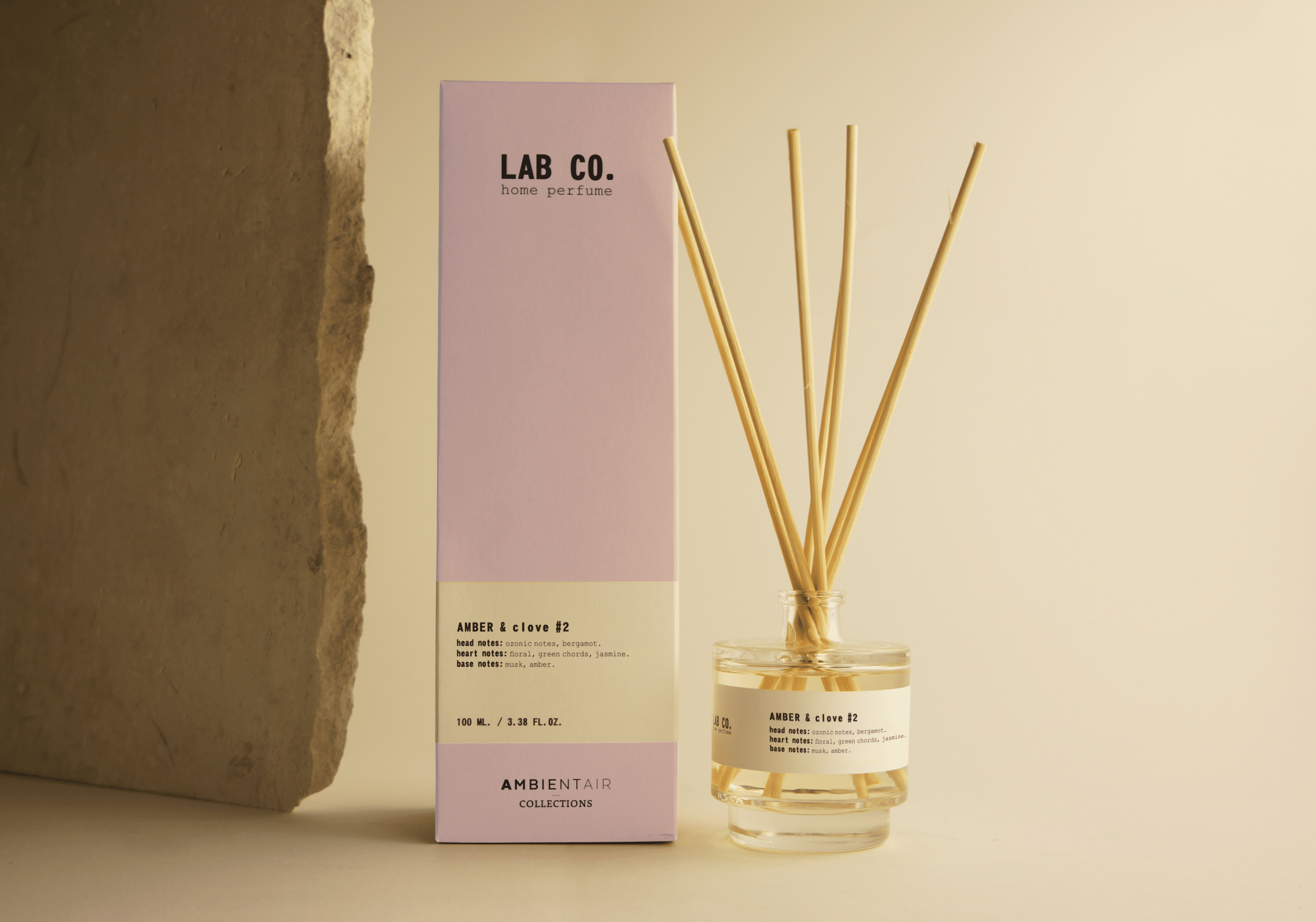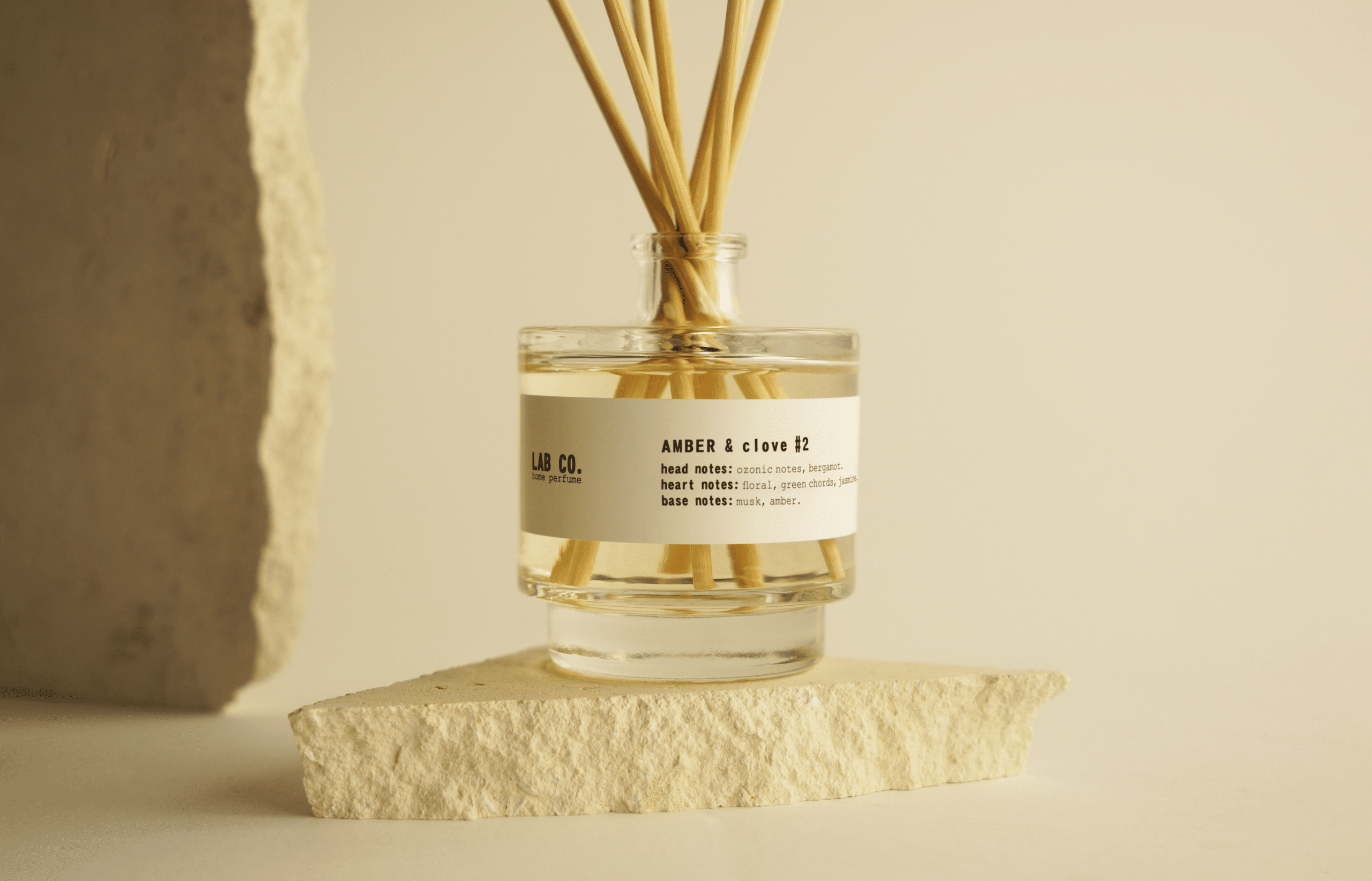 Llena tus espacios de una fragancia envolvente y refinada con el difusor de varillas Amber & Clove #2 de LAB CO., disponible en tamaños de 100 ml y 200 ml. Su frasco de vidrio y varillas de ratán no solo maximizan la difusión del aroma, sino que también suman un toque de diseño a tu decoración.
